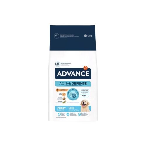 Advance Puppy Maxi está específicamente formulado para cubrir las necesidades nutricionales de los cachorros. Es un alimento fácil de digerir que contribuye al normal desarrollo del cerebro y la visión y al óptimo crecimiento de los huesos, gracias a los ácidos grasos omega-3, vitaminas y minerales. Incorpora nucleótidos que ayudan a mantener la respuesta inmunológica natural.