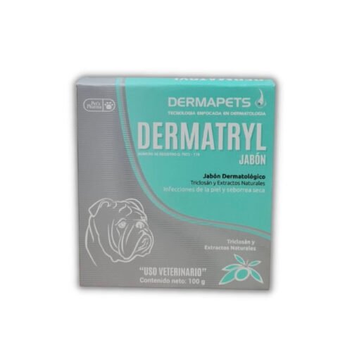 DERMATRYL JABÓN se usa para tratar problemas de la piel como: dermatitis, pioderma, seborrea seca y eczemas. Reduce las reacciones alérgicas cutáneas, así como la inflamación de la piel. Actúa como exfoliante, y antiséptico. Produce un efecto calmante y posee acción humectante e hidrata la piel evitando la resequedad. Mejora el brillo y la sedosidad del pelaje.