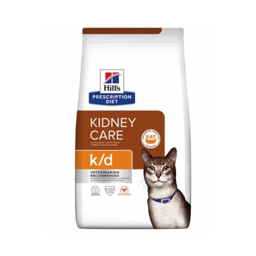Los nutricionistas y veterinarios de Hill’s han desarrollado la nutrición clínica Hill’s Prescription Diet k/d con ActivBiome+ Kidney Defense, una combinación exclusiva de prebióticos que ha probado que nutre al microbioma intestinal para ayudar a proteger la función renal vital. Prescription Diet k/d ha sido formulado también con la tecnología de estimulación del apetito (E.A.T. Technology) para estimular el apetito y aumentar el consumo de alimento. Este alimento seco está elaborado con pollo y tiene un sabor irresistible que a tu gato le encantará. De hecho, Prescription Diet k/d es una nutrición clínicamente probada para mejorar y prolongar la calidad de vida.