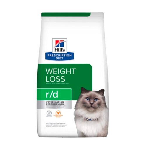 Hill’s Prescription Diet r/d alimento para gatos con pollo es un alimento dietético completo para la reducción del exceso de peso en gatos adultos. Este alimento tiene baja densidad energética.
