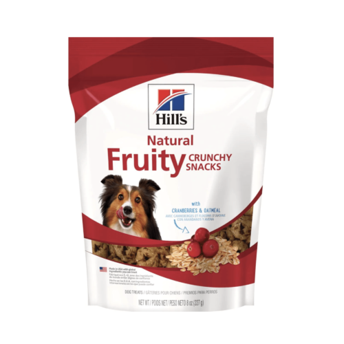 Hill’s® Natural Fruity Crunchy Snacks with Cranberries & Oatmeal son deliciosos premios naturales para perros hechos con solamente los mejores ingredientes. Cada premio está horneado con pedazos de fruta verdadera y hará feliz a su perro. Sin conservadores o saborizantes artificiales.