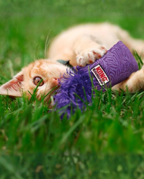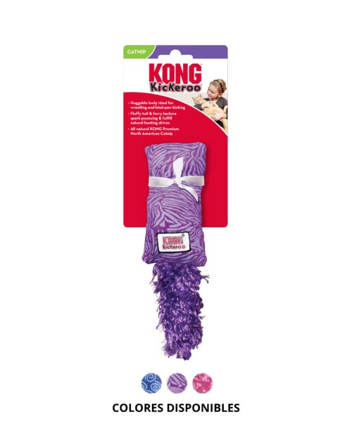 Este Kickeroo’s™ está diseñado a medida para gatitos, cuenta con un cuerpo largo que los anima a patear vigorosamente y promueve el movimiento de todo el cuerpo para los gatos en crecimiento. La cola peluda despierta el instinto de caza, mientras el sonido chillón y la Menta Gatuna Norteamericana de Alta Calidad de KONG llevan la diversión al máximo.