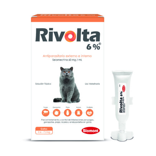 Rivolta 6% naranja: Una pipeta de 0.75 mL para gatos de 2.6 hasta 7.5 kg de peso.