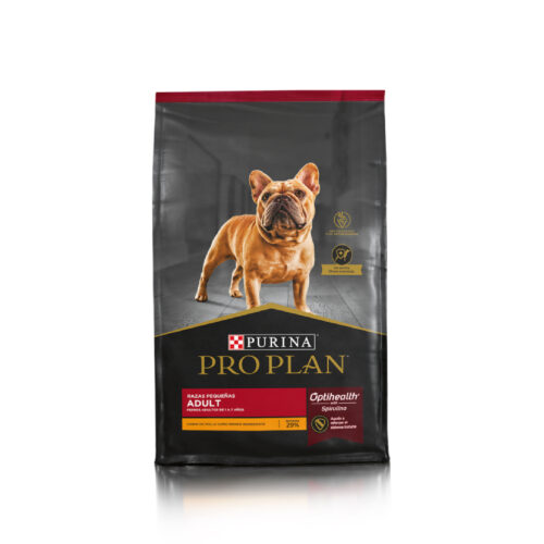 Provee nutrición de avanzada que ayuda a los perros de razas pequeñas a mantenerse fuertes y llenos de vitalidad. Para satisfacer las necesidades nutricionales específicas de los perros de razas pequeñas, PURINA® PRO PLAN® ha desarrollado Optihealth® Small Breed con una fórmula sumamente sabrosa. A través de croquetas más pequeñas, ofrece nutrición concentrada con óptimos niveles de proteínas (29%) y grasas (17%), utilizando carne fresca de pollo como ingrediente principal. Junto con una combinación equilibrada de vitaminas y minerales, brinda la energía y la protección para sustentar el tipo de metabolismo de los perros pequeños.